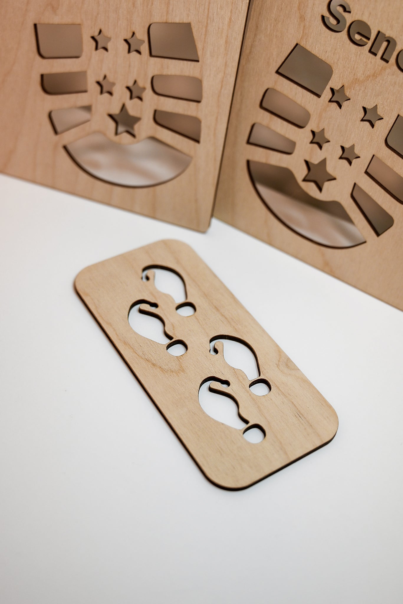 Elfo pėdos – tai smagus aksesuaras, padėsiantis sukurti magišką Kalėdų atmosferą jūsų namuose! Šis medinis šablonas su elfo pėdsakais leidžia lengvai padaryti mažų Kalėdų Senelio pagalbininkų žingsnelius, kurie nustebins vaikus. Tiesiog uždėkite šabloną ant grindų, kilimo ar sniego ir apibarstykite jį miltais, dirbtiniu sniegu ar kita lengvai nuvaloma medžiaga. Nuėmus šabloną, liks smagūs elfo pėdsakai, kurie atrodys lyg tikras mažojo Kalėdų pagalbininko apsilankymas.