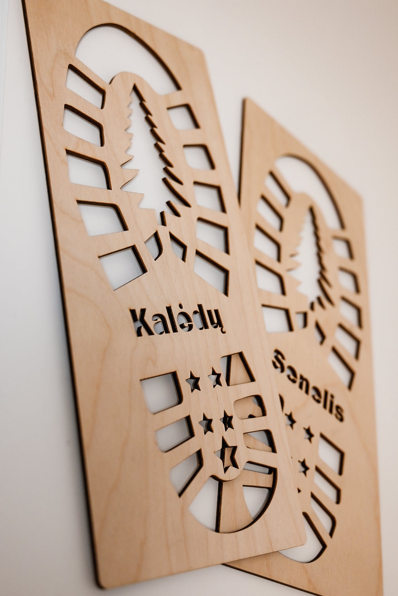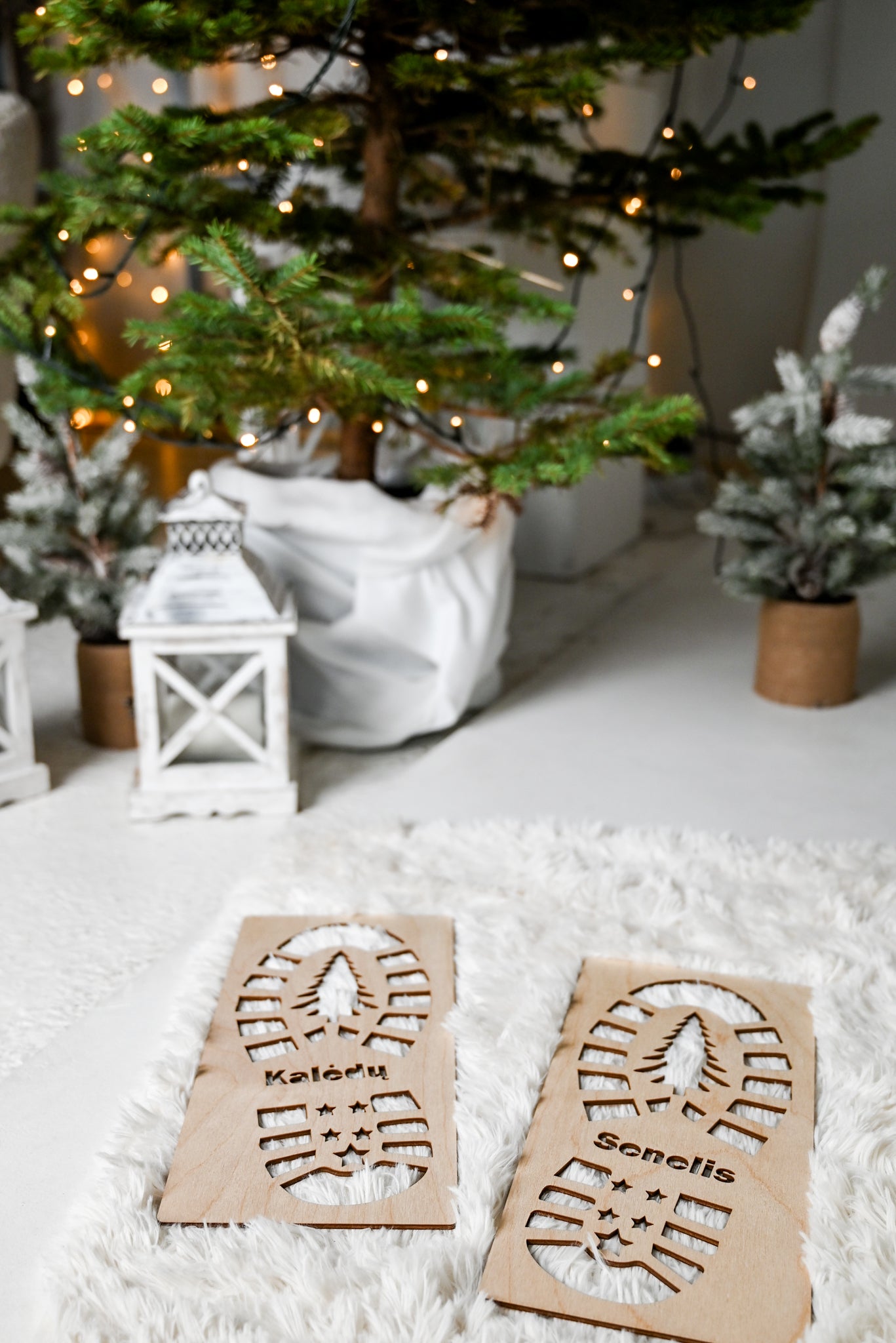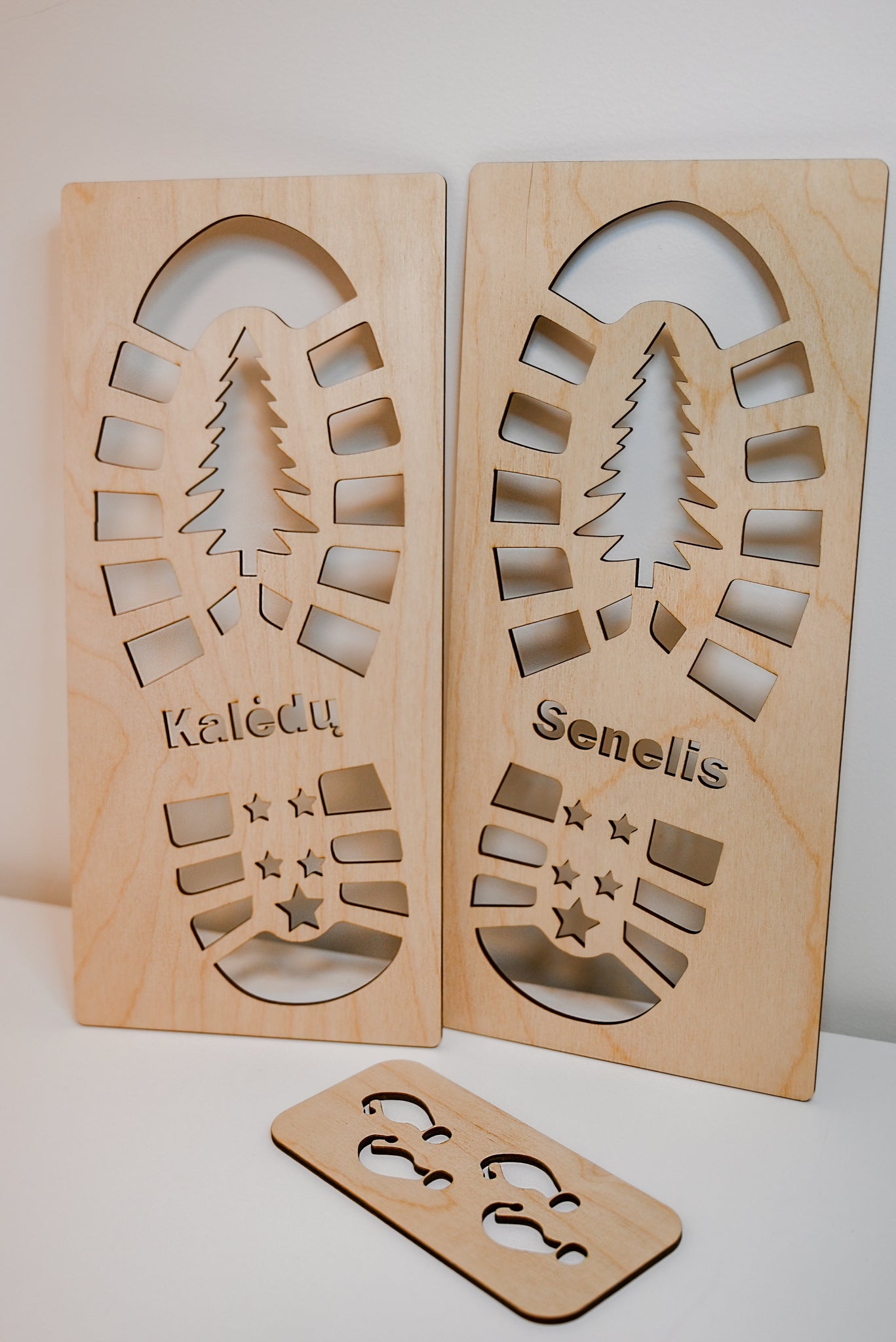 Kalėdų senelio pėdos – tai šventinę nuotaiką sukuriantis aksesuaras, skirtas nustebinti vaikus! Šios medinės šablono formos su užrašu „Kalėdų Senelis“ leidžia sukurti Kalėdų senelio pėdsakus namuose ar kieme. Tiesiog uždėkite šabloną ant grindų ar sniego ir apibarstykite jį miltais, dirbtiniu sniegu ar kita saugia medžiaga. Nuėmus šabloną, liks Kalėdų senelio pėdsakai, kurie sukels nuostabą ir džiaugsmą mažiesiems – puikus būdas sukurti stebuklingą švenčių atmosferą ir palikti įsimintinas akimirkas šeimai!