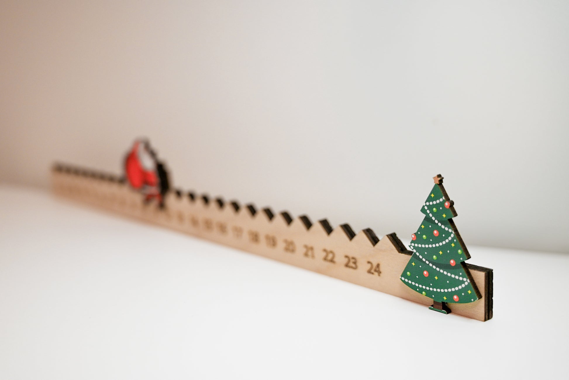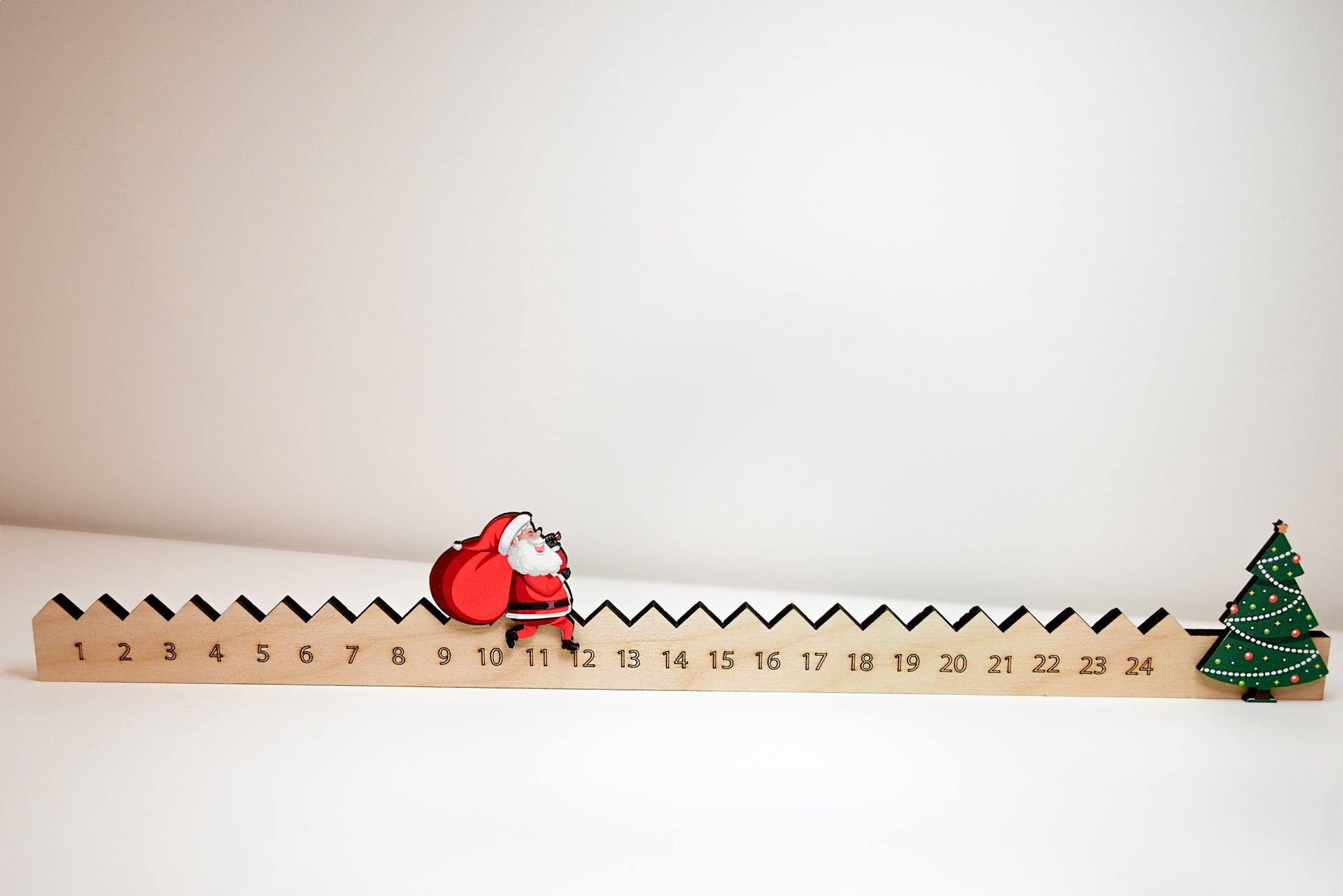 Skaičiuoklė iki Kalėdų – puikus būdas kasdien skaičiuoti likusias dienas iki šventės! Medinis skaičiuoklės stovas turi išgraviruotus skaičius nuo 1 iki 24, o Kalėdų Senelio figūrėlė juda per dienas link Kalėdų eglutės. Kiekvieną dieną perkelkite Kalėdų Senelį į kitą skaičių, sukurdami mažą ritualą ir džiaugsmą laukimo procese.